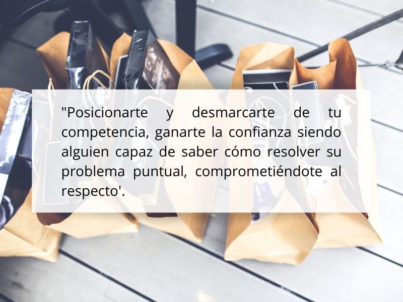 3. Elevar el valor de tu propuesta. Posicionarte y desmarcarte de tu competencia, ganarte la confianza siendo alguien capaz de saber cómo resolver su problema puntual, comprometiéndote al respecto. Cuando compites por precio, acabas trabajando mucho y ganando demasiado poco. Debes descubrir cuál será el beneficio final para tu cliente si decide comprarte a ti y presentárselo.
